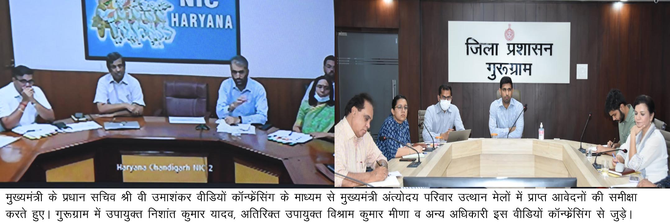 गुरुग्राम, 06 मई। मुख्यमंत्री के प्रधान सचिव श्री वी.उमाशंकर ने आज कहा कि मुख्यमंत्री परिवार उत्थान योजना सरकार की प्राथमिकता सूची में सबसे ऊपर है। ऐसे में सभी जिलों के अधिकारी तय समय सीमा में मुख्यमंत्री परिवार उत्थान योजना के तहत आयोजित पहले व दूसरे फेज के मेलों के जो भी लंबित आवेदन है उनको गति प्रदान करते हुए जल्द से जल्द उनका निस्तारण करें। वे आज वीडियो कांफ्रेंसिंग से मुख्यमंत्री अंत्योदय परिवार उत्थान योजना के संबंध में प्रदेश के सभी जिलों के जिला उपायुक्तों व मेलों से जुड़े सभी विभागों के प्रमुखों के साथ समीक्षा बैठक की अध्यक्षता कर रहे थे। उन्होंने बैठक में योजना से जुड़े लंबित आवेदनों की जिलावार समीक्षा की। इस दौरान मुख्यमंत्री अंत्योदय परिवार उत्थान योजना के मिशन डायरेक्टर मनदीप बरार भी बैठक में उपस्थित थे।