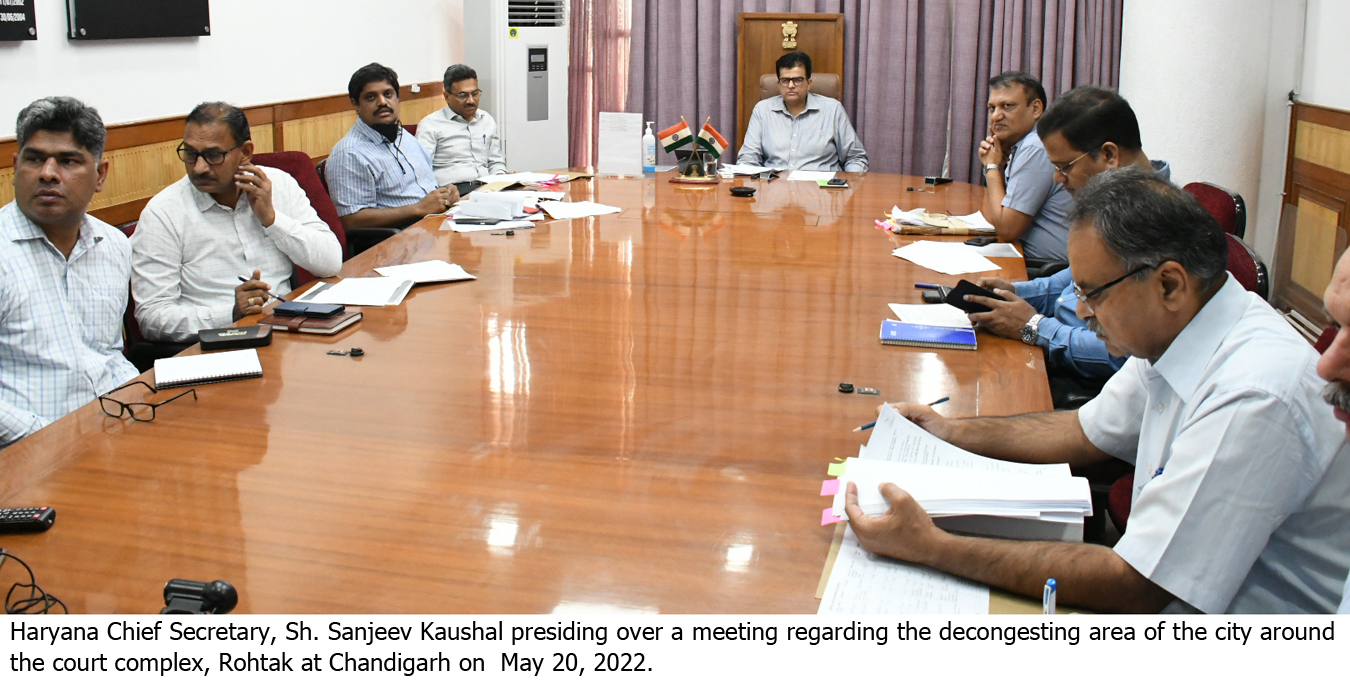 चंडीगढ़, 20 मई – हरियाणा के मुख्य सचिव श्री संजीव कौशल ने अधिकारियों को निर्देश दिये हैं कि रोहतक कोर्ट कॉम्प्लेक्स के आसपास के अत्यधिक भीड़भाड़ वाले क्षेत्र को कम करने और भविष्य में शहर के विस्तार के मद्देनजर रखते हुए इस क्षेत्र में स्थित विभिन्न कार्यालयों को बाहर स्थानांतरित करने के लिए एक विस्तृत परियोजना तैयार करेें। स्थानांतरण उपरांत जो भूमि खाली होगी उसके सदुपयोग के लिए विभिन्न राजनैतिक, सामाजिक, औद्यौगिक तथा रेजिडेंट वैल्फेयर एसोसिएशन से विचार विमर्श किया जाये।