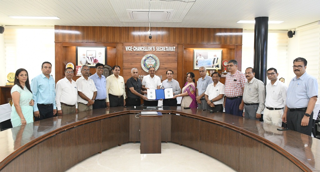 हिसार : 29 जून – चौधरी चरण सिंह हरियाणा कृषि विश्वविद्यालय तथा गुरू जंभेश्वर विज्ञान एवं प्रौद्योगिकी विश्वविद्यालय, हिसार शिक्षा व अनुसंधान क्षेत्रों में एक-दूसरे का सहयोग करेंगे। इसके लिए इन दोनों विश्वविद्यालयों के बीच एक अनुबंध पर हस्ताक्षर हुए हैं।