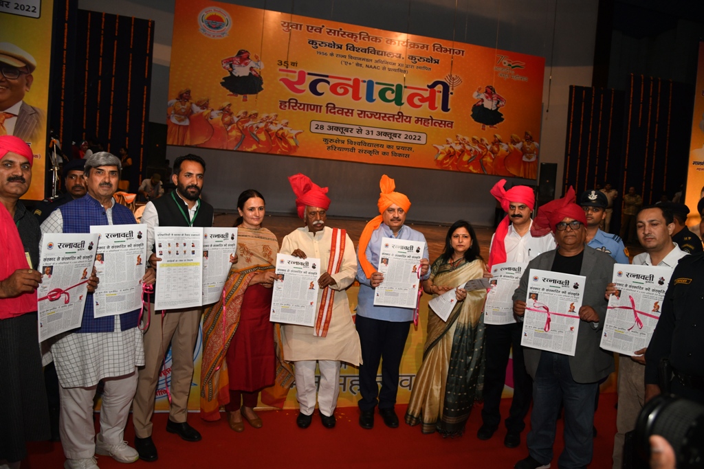 कुरुक्षेत्र, 28 अक्टूबर : हरियाणा के राज्यपाल एवं कुरुक्षेत्र विश्वविद्यालय के कुलाधिपति बंडारू दत्तात्रेय ने कहा कि हरियाणा की संस्कृति को अंतरराष्ट्रीय पहचान दिलाने में कुरुक्षेत्र विश्वविद्यालय के रत्नावली महोत्सव का अहम योगदान रहा है। इस रत्नावली महोत्सव से युवाओं को प्रदेश की सांस्कृतिक विरासत को आत्मसात करने का एक अवसर मिलता है और अच्छी शिक्षा और संस्कार भी मिलते हैं। यह महोत्सव निश्चित रूप से प्रदेश सरकार की हरियाणवी संस्कृति के प्रति सोच को अमलीजामा पहनाने का काम कर रहा है।