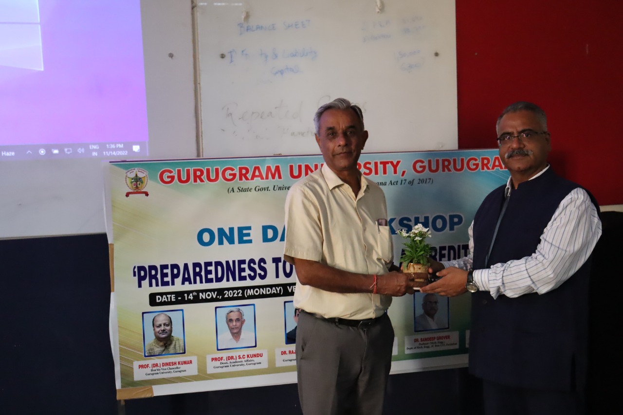 इस अवसर पर कार्यक्रम के मुख्य अतिथि और गुरुग्राम विवि के कुलपति प्रो. दिनेश कुमार ने कार्यशाला में उपस्थित सभी माननीय अतिथियों का स्वागत करते हुए कहा कि वर्तमान समय में नवाचार एवं गुणवत्तापूर्ण शिक्षा प्रदान करना हम सभी का मुख्य ध्येय है। उच्च शिक्षा में गुणवत्ता के मू्ल्यांकन हेतु नैक मूल्यांकन का विशेष महत्व है।