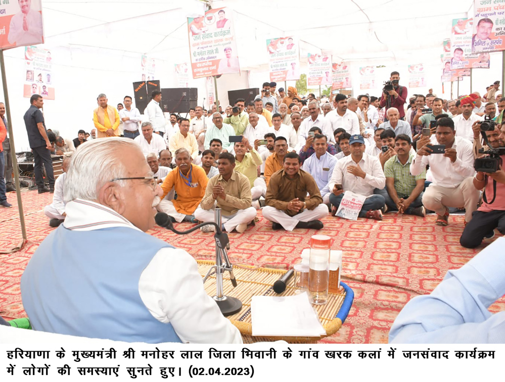 मुख्यमंत्री ने भिवानी जिले के खरक कलां गांव में ग्रामीणों से किया जन संवाद