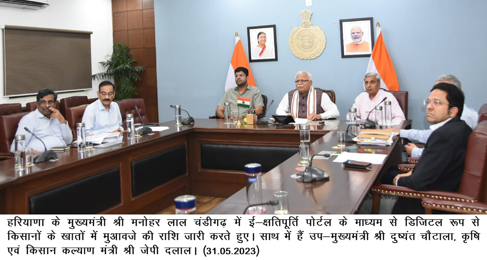 श्री मनोहर लाल ने एक क्लिक से ई-क्षतिपूर्ति पोर्टल के माध्यम से सीधे किसानों के खातों में मुआवजा राशि को ट्रांसफर किया।