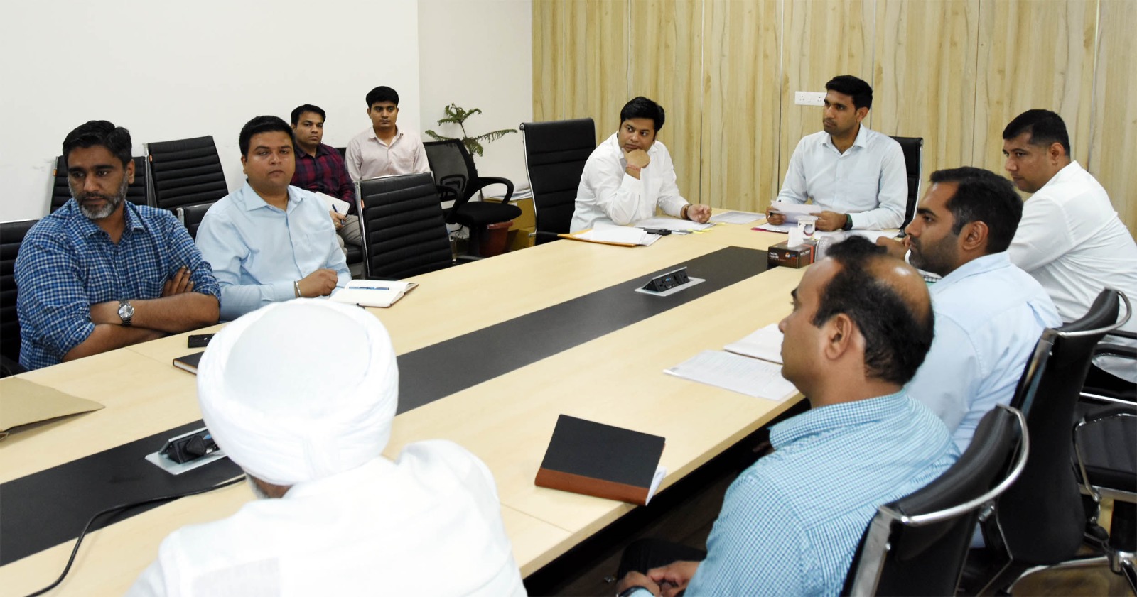 गुरुग्राम, 22 जून। मानेसर नगर निगम से जुड़े विभिन्न विषयों को लेकर डीसी निशांत कुमार यादव ने वीरवार को एचएसआईआईडीसी, एनएचएआई के अधिकारियों के साथ बैठक कर उन्हें आवश्यक दिशा निर्देश दिए। विकास कार्यों के तहत विभिन्न विभागों में बेहतर समन्वय को लेकर मानेसर निगम कार्यालय में आयोजित इस बैठक में मानेसर नगर निगम के आयुक्त साहिल गुप्ता भी मौजूद रहे।