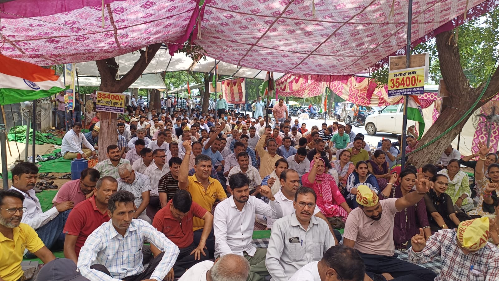 लिपिक एसोसिएशन के जिला प्रधान विकास यादव ने कहा कि जब तक सरकार लिपिकों की वेतन बढ़ाने की मांग को पूरा नहीं करती, तब तक धरना व प्रदर्शन जारी रहेगा। इसलिए सरकार को अविलंब कार्य समीक्षा के आधार पर लिपिकों का वेतनमान 35400 रूपये लाग करना चाहिए। धरने को कॉमरेड राजेंद्र सिंह एडवोकेट, वीर सिंह, कुलदीप यादव, रामनिवास बेनीवाल, विजय चौधरी ने संबोधित किया वहीं हास्य कवि आलोक भांडोरिया ने अपनी हास्य कविताओं के जरिये कर्मचारी को खूब हंसाने का काम किया।