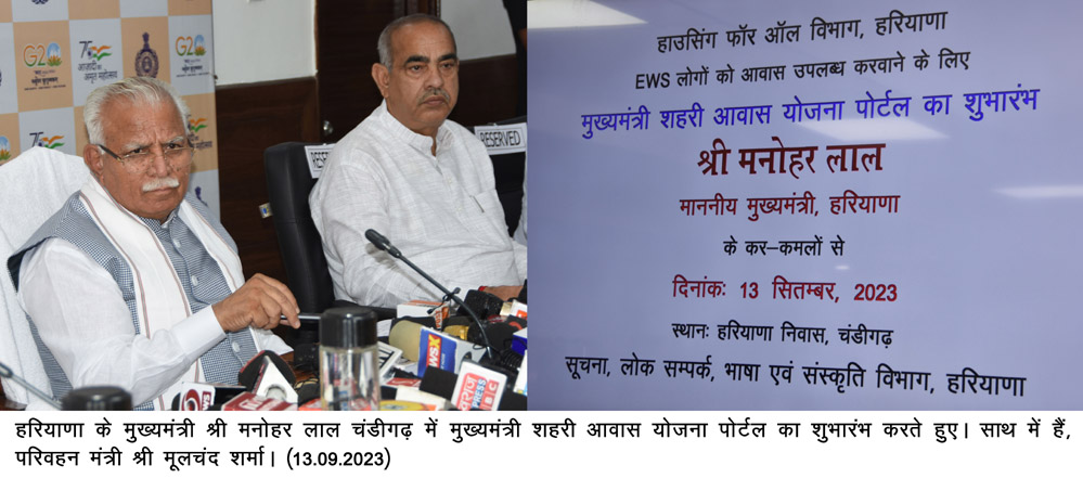 मुख्यमंत्री मनोहर लाल ने मुख्यमंत्री शहरी आवास योजना पोर्टल का किया शुभारंभ