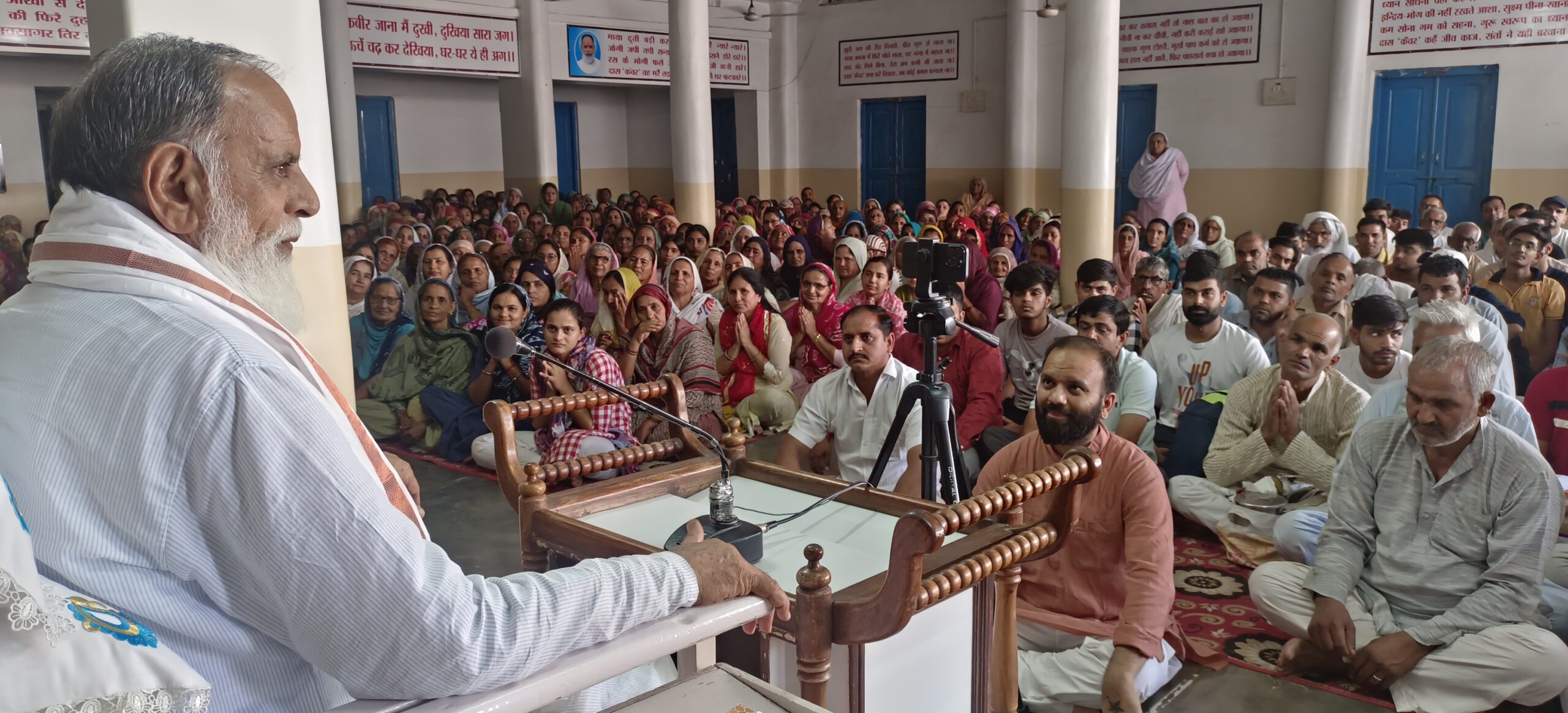 उन्होंने कहा कि दो ही बाते रह जाती हैं एक गीत और दूसरी भीत। यही गीत और भीत यानी दीवारें आपके जाने के बाद भी आपको अमर बना कर रखती हैं। युग बदलने पर भी आज महापुरषो के आदर्श जिंदा हैं। जो परोपकार और परमार्थ का रास्ता स्थापित कर गए गीत सदा उन्ही के गाये जाते हैं। स्वर्ग और नर्क इसी जगत में भोगे जाते हैं। जिन्होंने वर्तमान को स्वर्ग सरीखा बना लिया उनको आगे भी स्वर्ग ही मिलेगा। गुरु महाराज जी ने आगे फरमाया कि गुरु नाम ज्ञान है। ज्ञान अच्छे और बुरे में फर्क करना है। गुरु अज्ञान से ज्ञान की और ले जाता है। ज्ञान ही भक्ति की समझ का ज्ञान है। परमात्मा के भेद को जान लेना। इंद्री भोग में गाफिल इंसान शरीर इंद्री के आनंद तक ही सीमित है। उसे नाम रस के आनन्द का संज्ञान ही नहीं है। लेकिन जब नाम का रस आना शुरू हो जाता है। तब बाकी रस फीके पड़ जाते हैं।हुजूर ने फरमाया कि सत्संग की बुराई वहीं करता है, जिसकी स्वंय की बुराई नहीं छुटी। नाच ना जाने आंगन टेढ़ा की तर्ज पर ऐसे अज्ञानी लोग सतगुरु सत्संग और सतनाम में खोट निकालते हैं। आपके कर्म आपको आगे बढ़ने नहीं देते। हाथों पर सरसों हरी नहीं होती। संयम और धैर्य भक्ति के आभूषण हैं। पहले अपनी रहनी सुधारो करनी स्वतः सकारात्मक हो जाएगी। उन्होंने उच्च कोटि का अध्यात्म परोसते हुए कहा कि परमात्मा सबका ख्याल रखता है। उसकी करोड़ो आंखे और हाथ हैं। हम भेदभाव करते हैं परमात्मा नहीं। उन्होंने कहा कि समय की कीमत पहचानो। जो जन्मा है वो मरेगा जरूर इसलिए भक्ति करो ताकि जन्म मरण के चक्कर से छुटकारा मिल सके।