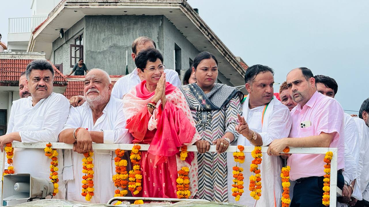 करनाल/चंडीगढ, 20 अगस्त। अखिल भारतीय कांग्रेस कमेटी की महासचिव, पूर्व केंद्रीय मंत्री एवं सांसद कुमारी सैलजा ने मंगलवार सुबह 10 बजे पूर्व प्रधानमंत्री स्वर्गीय राजीव गांधी की जयंती के अवसर पर कांग्रेस यात्रा के माध्यम से भाजपा सरकार की जनविरोधी नीतियों के विरुद्ध करनाल में कंबोज धर्मशाला से यात्रा का शुभारंभ किया। कांग्रेस यात्रा का करनाल में कंबोज धर्मशाला से वाल्मीकि चौक, कर्ण गेट मार्केट, महावीर चौक नजदीक पुरानी सब्जी मंडी, नेहरू प्लेस गेट, पोस्ट ऑफिस गेट के पास, महावीर दल अस्पताल गेट, मिगलानी अस्पताल के सामने, सुविधा शोरूम के सामने, रणधीर सिनेमा के पास, सिविल अस्पताल चौक, मेला राम स्कूल, सचदेवा अस्पताल से होकर, मदन लाल ढींगरा चौक पर समापन हुआ।