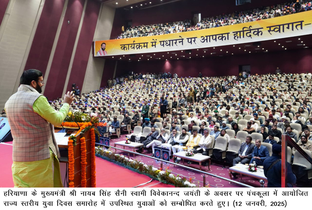 मुख्यमंत्री श्री नायब सिंह सैनी आज राष्ट्रीय युवा दिवस और स्वामी विवेकानंद जयंती के अवसर पर पंचकूला में आयोजित राज्य स्तरीय समारोह में युवाओं को सम्बोधित कर रहे थे।