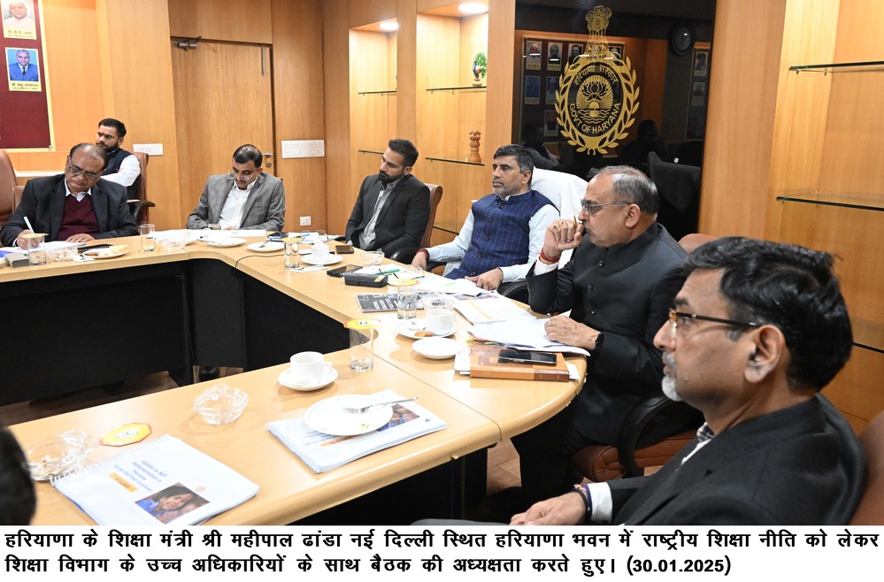 शिक्षा मंत्री श्री महीपाल ढांडा ने आज नई दिल्ली स्थित हरियाणा भवन में राष्ट्रीय शिक्षा नीति को लेकर शिक्षा विभाग के उच्च अधिकारियों के साथ बैठक की। बैठक में शिक्षा विभाग के अतिरिक्त मुख्य सचिव विनीत गर्ग, तकनीकी शिक्षा विभाग के महानिदेशक प्रभजोत सिंह, उच्चतर शिक्षा विभाग के निदेशक राहुल हुड्डा, सेकेंडरी शिक्षा के निदेशक जीतेन्द्र कुमार, गुरुग्राम विश्वविद्यालय से राजीव, निदेशक ऋषि गोयल, सुनील बज़ाज, एससीईआरटी से इंदु, जिला शिक्षा अधिकारी गुरुग्राम कुलदीप मेहता, विशेष आमंत्रित सदस्य सहित अन्य अधिकारी उपस्थित रहे।