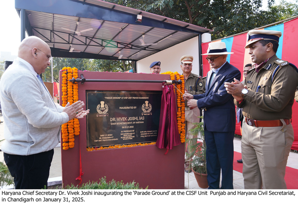 चंडीगढ़, 31 जनवरी-हरियाणा के मुख्य सचिव डॉ. विवेक जोशी ने आज यहां पंजाब एवं हरियाणा सिविल सचिवालय की केंद्रीय औद्योगिक सुरक्षा बल (सी.आई.एस.एफ.) यूनिट के नवनिर्मित परेड ग्राउंड का उद्घाटन किया। इस अवसर पर सी.आई.एस.एफ. की भूमिका को रेखांकित करते हुए डॉ. जोशी ने कहा कि यह बल देश के महत्वपूर्ण संस्थानों की सुरक्षा सुनिश्चित करने में अहम भूमिका निभाता है और किसी भी सुरक्षा खतरे का सामना करने के लिए पूरी तरह सक्षम है।