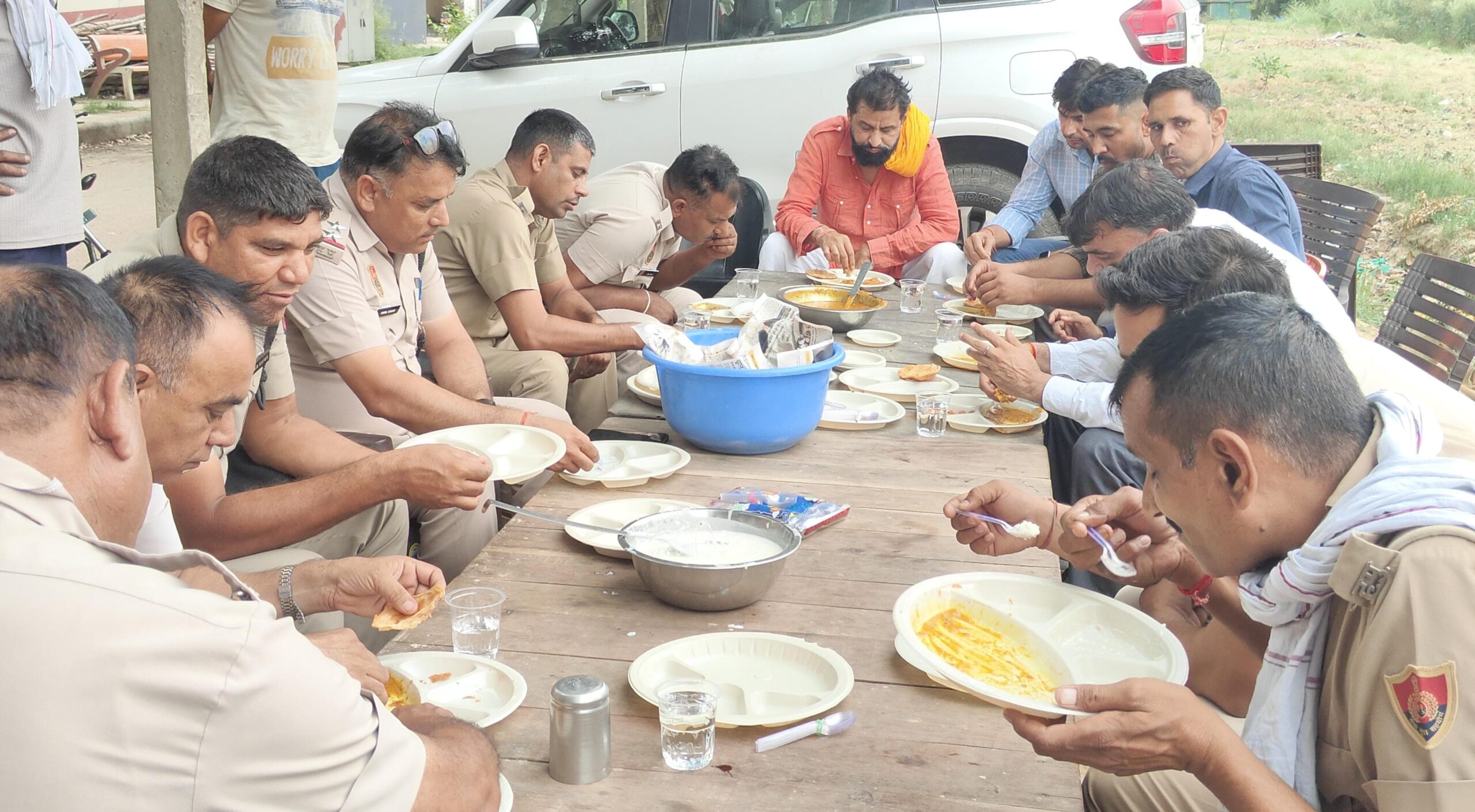 रोहतक (30 मई) / जैसा कि आप सभी जानते है शुक्रवार 30 मई को पहरावर में सरकार द्वारा राज्यस्तरीय भगवान परशुराम जन्मोत्सव मनाया गया जिसमें हरियाणा के मुख्यमंत्री नायब सिंह सैनी भी पहुंचे। वहीं दूसरी ओर मुख्यमंत्री के पहरावर पहुंचने से पहले सैकड़ों पुलिसकर्मी बस भरकर नवीन जयहिन्द के बीपीएल आवास पर पहुंच गए और जयहिन्द को हाउस अरेस्ट कर लिया। नवीन जयहिन्द ने हलवाई बुलाकर देसी घी का खीर–हलवा(सब्जी–पूरी) बनवाई और बीपीएल आवास पर ही भंडारा करवा दिया। सभी पुलिसकर्मियों व आस–पास के लोगों ने भंडारे का प्रसाद ग्रहण किया।