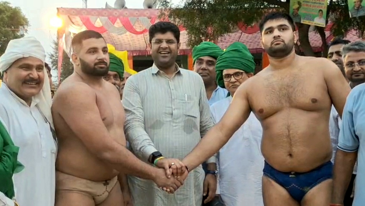 दंगल की सबसे बड़ी कुश्ती के पहलवानों के पूर्व डिप्टी सीएम दुष्यंत ने मिलवाए हाथ