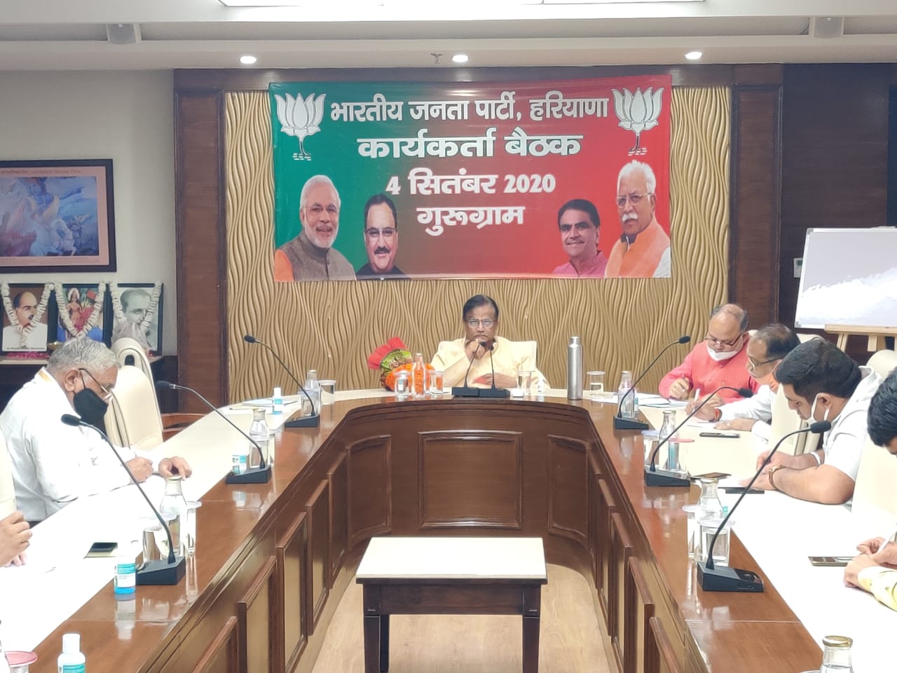 गुरुग्राम में जिलाध्यक्षों की बैठक में मुख्यमंत्री मनोहर लाल भी वर्चुअल माध्यम से हुए शामिल.