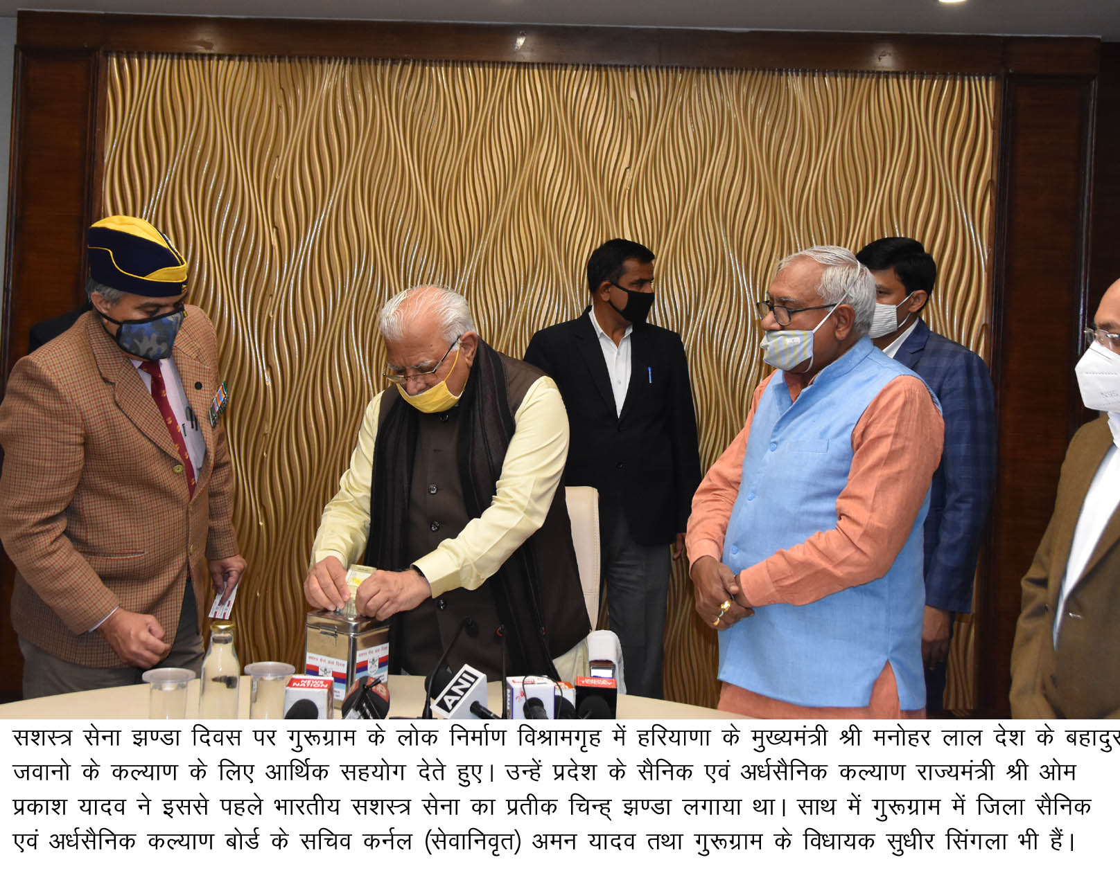 7 दिसंबर को सशस्त्र सेना झण्डा दिवस मनाया गया, मुख्यमंत्री श्री मनोहर लाल को लगाया गया सशस्त्र सेनाओ का झण्डा, जिसके लिए उन्होंने झण्डा कोष में आर्थिक सहयोग भी दिया