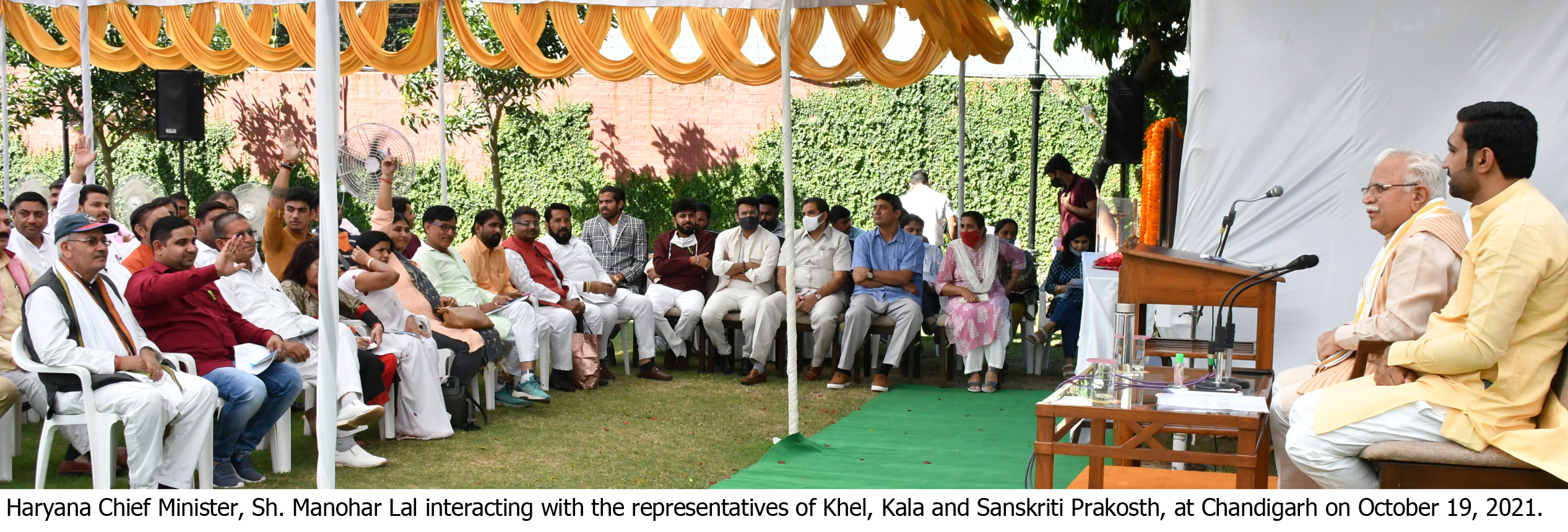 मुख्यमंत्री ने कहा कि पिंजौर में 60 एकड़ में एक फिल्म सिटी की स्थापना की जा रही है। पंचकूला जिला हिमाचल से सटा है तथा मोरनी हिल्स व शिवालिक पर्वतीय क्षेत्र में फिल्मों की शूटिंग के लिए उपयुक्त है। भिवानी से आए कवि श्री वी.एम.वैचन ने कहा कि उन्होंने अंग्रेजी व संस्कृत की कई पुस्तकों का हरियाणवी में अनुवाद किया है । उन्होंने हरियाणवी बोली को भाषा में बदलने के लिए एक आयोग के गठन या हरियाणवी अकादमी के गठन की मांग मुख्यमंत्री से की। उन्होंने हरियाणावी में अनुवादित पुस्तक ‘जै’ मुख्यमंत्री को भेंट की ।